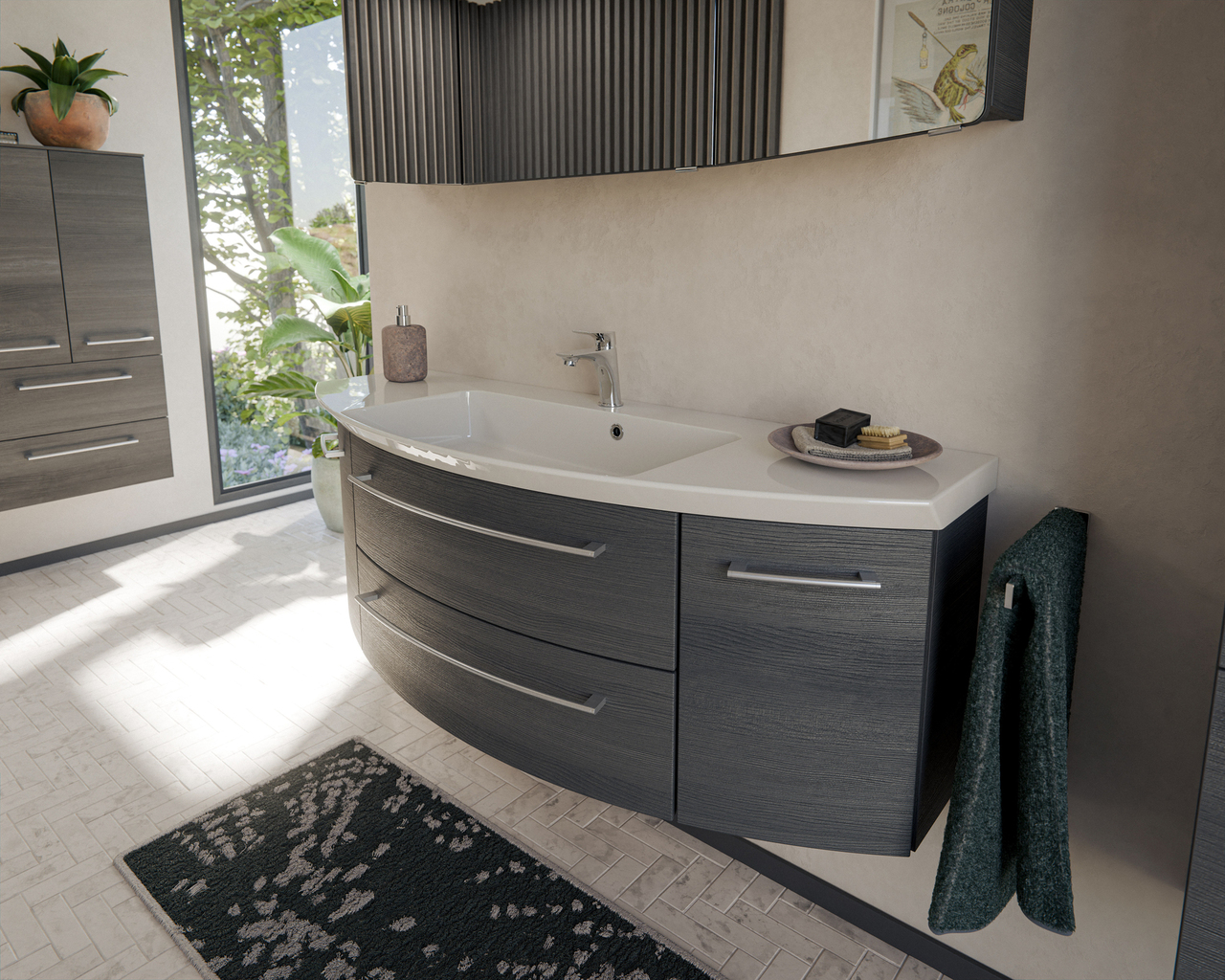 Die Glas- oder Mineralmarmorwaschtische sind in vier Größen erhältlich und bieten neben komfortablen Ablageflächen und einem großzügigen Becken eine sanfte eigenwillige Form. Diese einzigartige Formensprache spiegelt sich auch in den Griffen wider. Die Spiegelschränke stehen ebenso wie die Unterschränke für modernes, aber dennoch zeitloses Design. Geräumiger Stauraum, kombiniert mit den bewährten Ordnungssystemen entsprechen den Bedürfnissen der heutigen Zeit genauso, wie die effektvolle und funktionelle Lichtgestaltung. Cassca ist ein harmonisches Zusammenspiel von Funktionalität und modernem Design. Der Erfolg gibt diesem Programm recht.