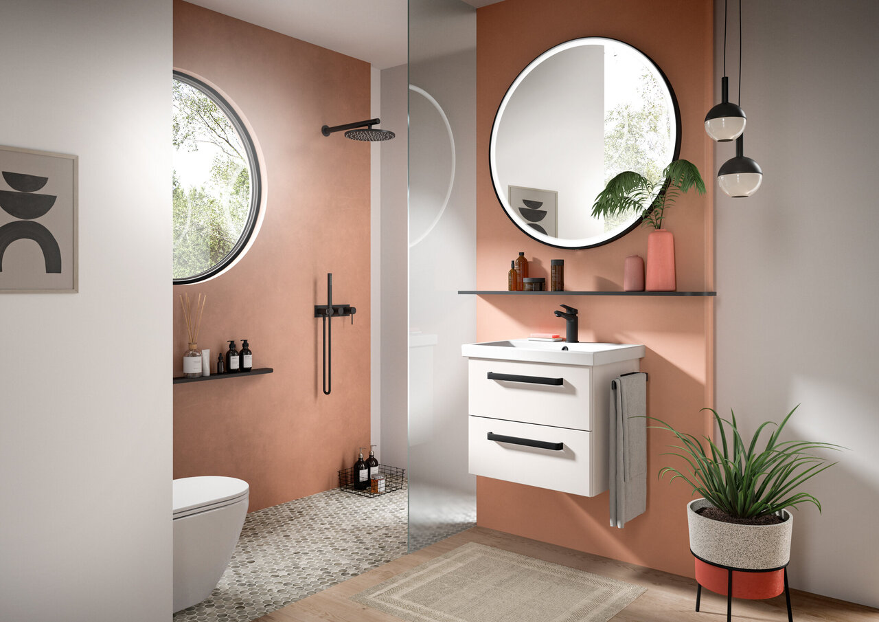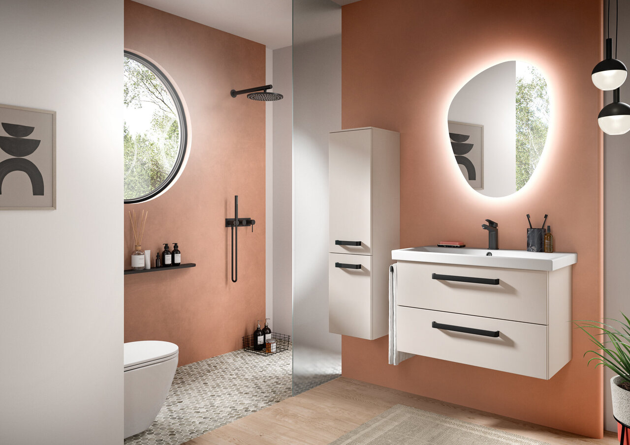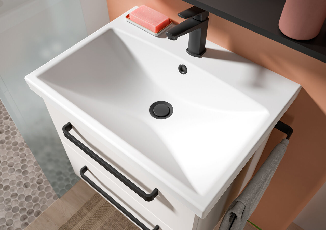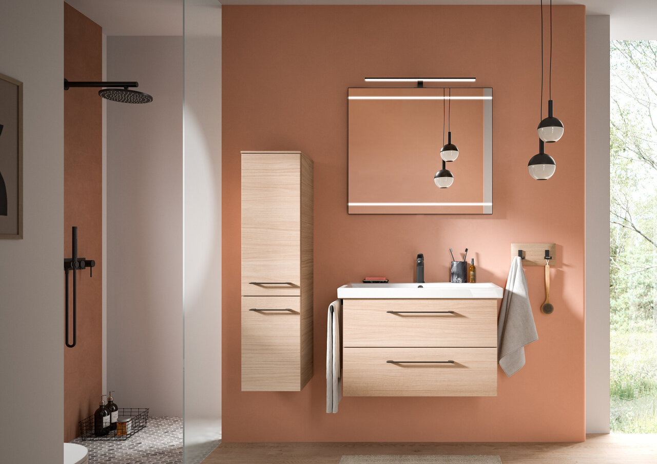 Represents particular expertise where ceramic washbasins are concerned: two different washbasin designs, each available in three different sizes, provides an all-encompassing offering that leaves nothing to be desired. While the BELO version charms with its straight classical lines, the GIRONA stands out thanks to its cubic modern design. The invariably fresh and harmonious designs and wide range of décors, combined with the numerous additional units and its practical opportunities transform The range of products has been finalised, meaning you can now choose your bathroom furniture. Let’s go!