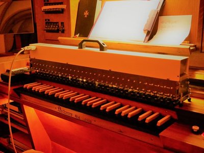 Hier stand erstmals ein Aufsatzgerät zur Verfügung, das auf eines der zwei Manuale aufgesetzt wurde und mit kleinen Magneten die Manualtasten bewegte. Die Register mussten noch manuell bedient werden.