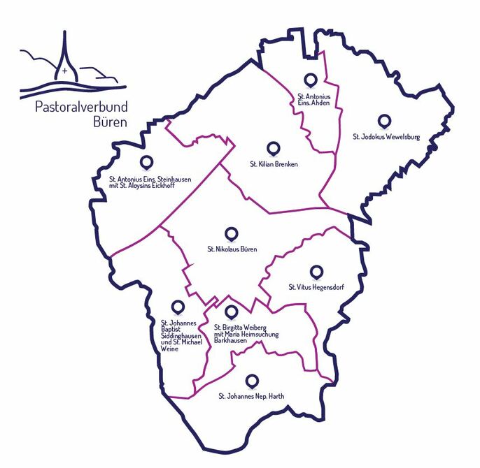 Dieser ist zusammengefügt durch die ehemaligen Pastoralverbünde Büren-Süd und Kleiner Hellweg/Almetal und besteht aus den kirchenrechtlich-selbstständigen Kirchengemeinden