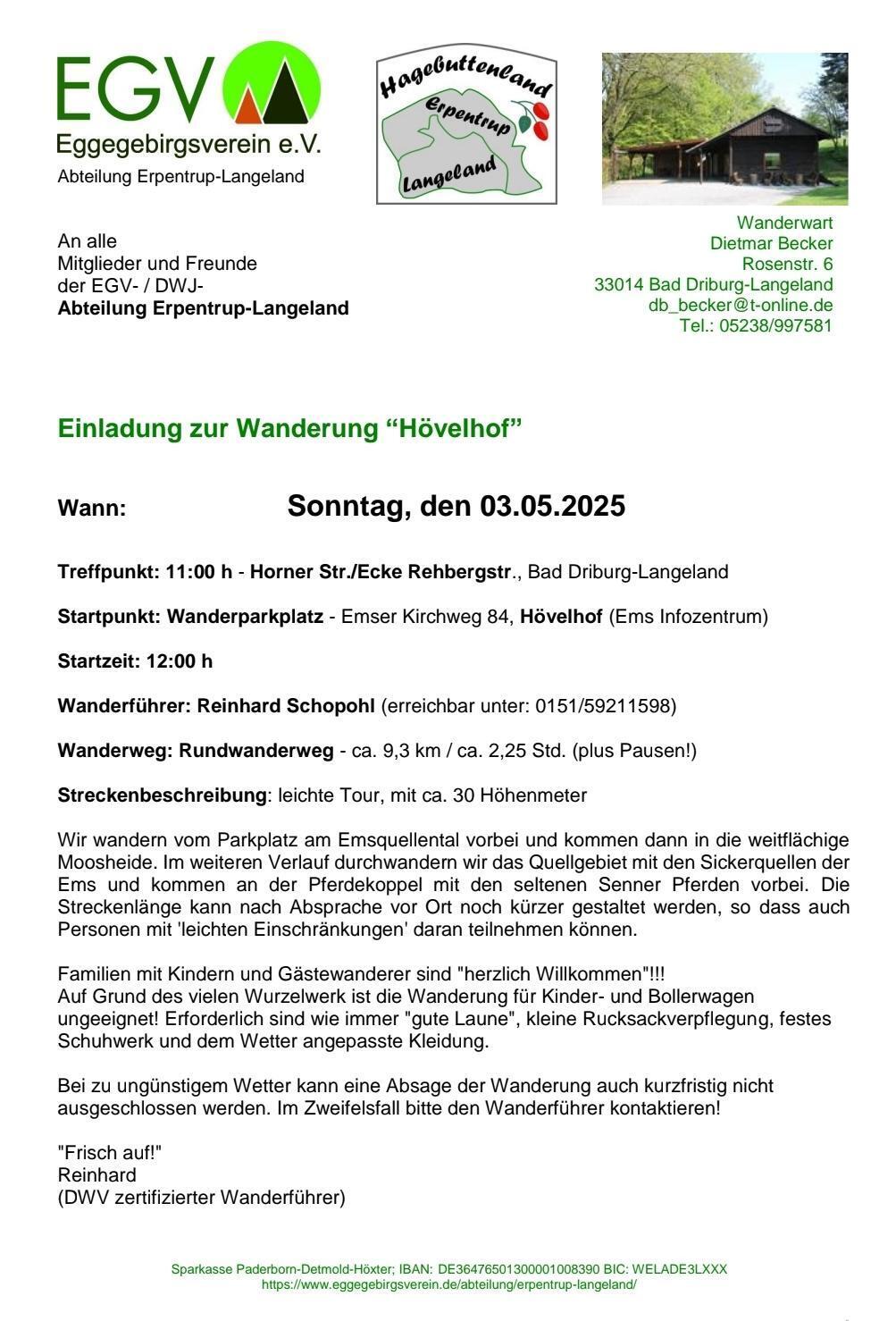 - Eggegebirgsverein und Deutsche Wanderjugend Erpentrup - Langeland