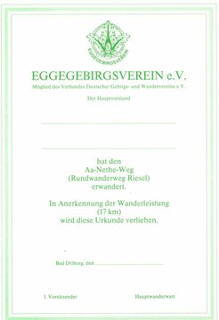 Eggeweg und weitere Wanderungen (insgesamt 400 km) (bestätigt im Wanderpass)